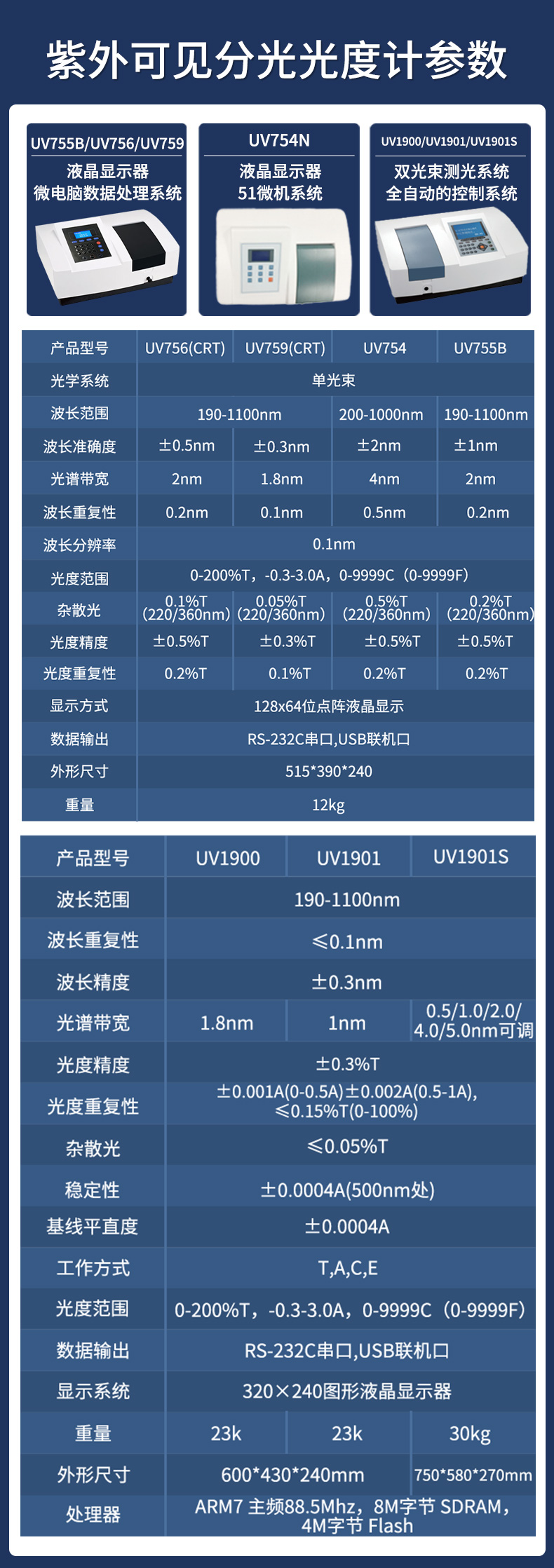 新款双光束紫外光度计UV1901